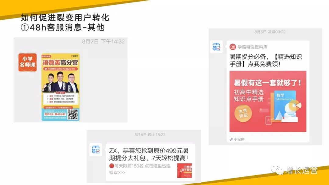 在这里需要提到的是,针对学生的诱饵,要比针对家长的诱饵更有效。举个例子,一本讲学习方法的书,效果远远强于讲家庭教育的。这个还需要根据你们的目标用户实际情况来做。