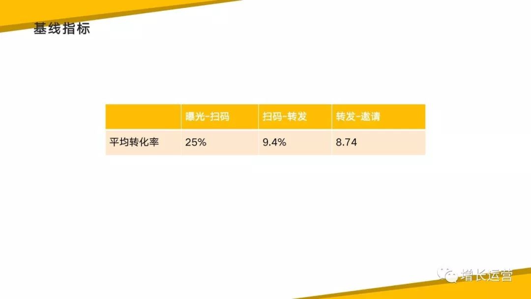 另一方面是当你有了各个环节基线数据之后(这里提一下,基线数据是指根据你过往增长实验得到的各项指标的平均值)有了这个数据之后,你就可以对比活动数据与它的高低,来判断这场活动的好坏。