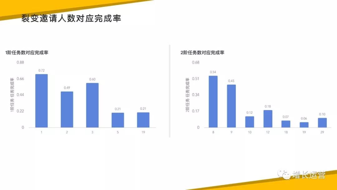 5、从邀请到完成任务,这个比例我们叫“活动完成率”。我们以此来去判断你活动的邀请门槛设置的是否合理。邀请门槛太高会影响增长,太低会增加获客成本。