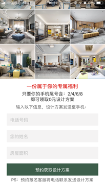 以上投放策略具体如何灵活组合运用,是后续优化的关键。比如下面分享这个案例,0元领取设计方案,且利用手机号给用户一种专属感,刺激转化!同类的套路还有生肖、生日等等。