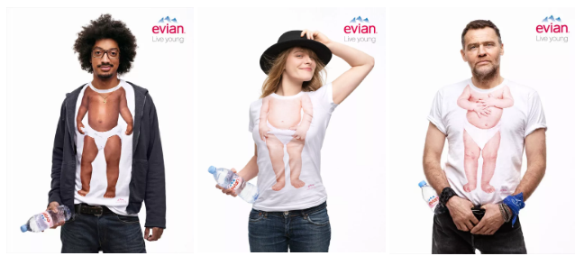 其次比如依云,为了强调它的品牌理念live young,依云用baby来展现品牌的活力与童真。