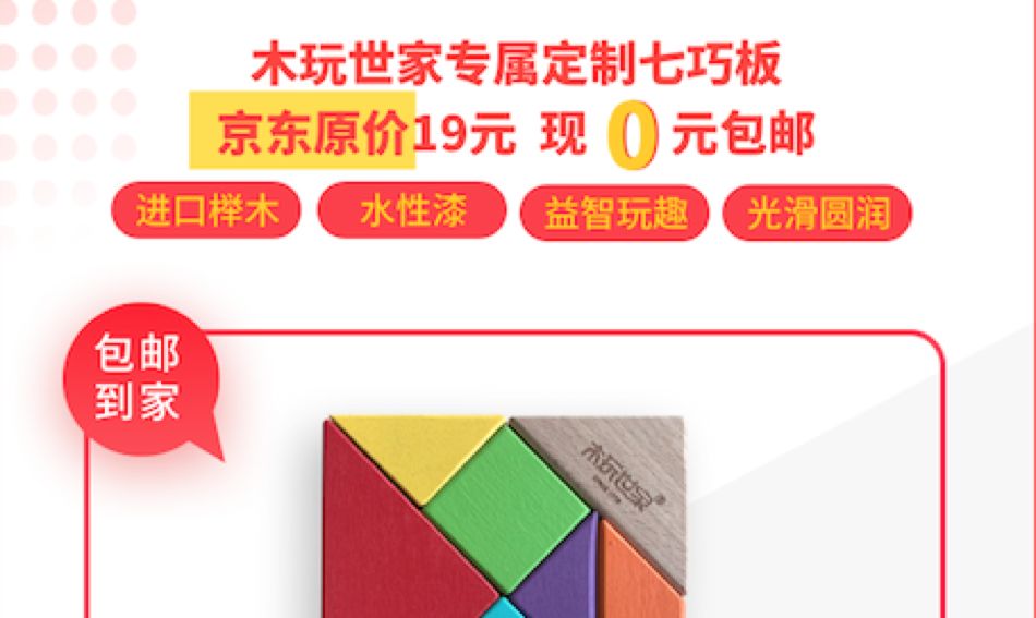 家长对于实物的要求通常有3个:精品、正版、包邮,我们在以往的实物营销当中必定重点突出这3个点。七巧板是整个礼包中撑起价值感的非常重要环节,针对七巧板我们专门去看了各电商平台买七巧板的详情页和用户评价区,发现用户非常在意是木质还是塑料、有没有油漆味道、有么有棱角,用户最在意的东西一定得突出标示。