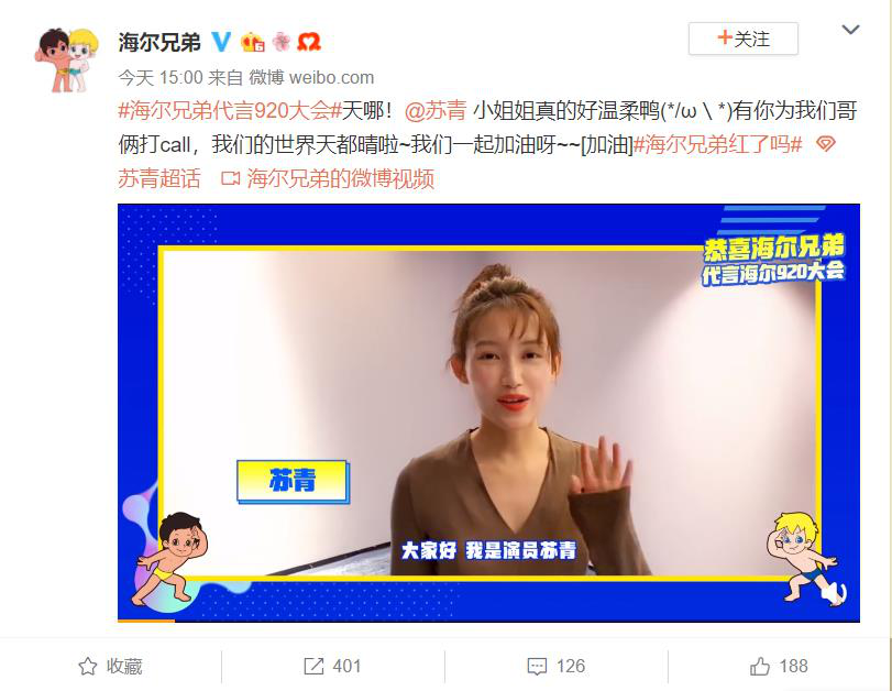 这样夺眼球的咖位与人缘背后,我们更可以读出到海尔兄弟的运营策略,通过自家IP,代言自家活动,这也正是海尔兄弟通过社交媒体打造人格化IP,与实现品牌赋能的思路与举措。