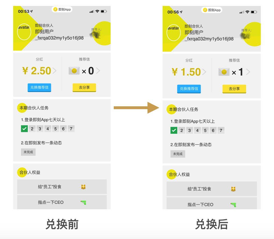 9月1日前注册的老用户可以直接成为合伙人。这波早期用户成为裂变的起点,可以分发推荐信,9月1日之后注册的用户只有通过推荐信才能成为合伙人。