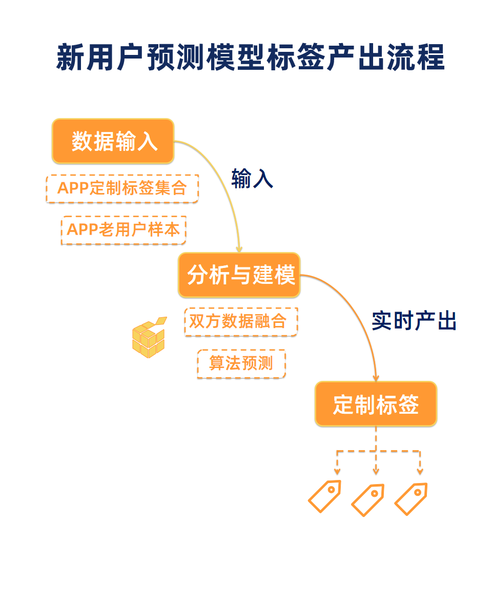 在某资讯类APP案例中,双方通过数据联合建模,输出了完整且定制的新画像标签,经过测试标签预测准确度达70%。在执行冷启动的过程中,该APP通过定制标签为新用户推荐感兴趣的内容,新用户次日留存率提升了18%。