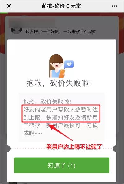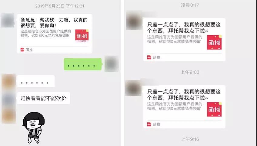 然而「萌推」的用户砍价几乎永远都砍不到 0 ,我们回过头来看看它都是怎么套路用户的。