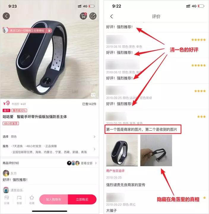 就在我在研究「萌推」的套路时,在评论区发现很多用户都表示自己被坑了,比如 以为 9 块钱买到智能手环,实际拿到手的还真是个手环,但并不智能。