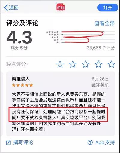 很难想象,一个套路如此之多的 App 的综合评分能这么高,想必在 ASO 上下了很大的功夫。(我们之前的文章也提到过,一般评分呈现 B 型的,基本上都是刷出来的)