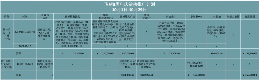 ③玩谐音梗“飞猪=飞珠”,同时微博抽奖点燃话题,国庆出行带有“猪、珠、zhu”字的,转发并@官微,抽奖报销机票;