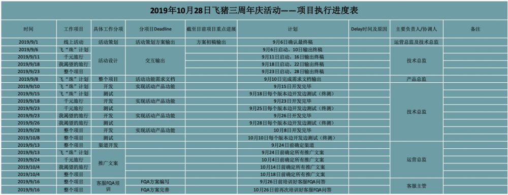 ⑤活动开发:如果活动开发过程中,难度过大,超出开发时限,必须提前与运营人员沟通,重新协商,制定B方案;