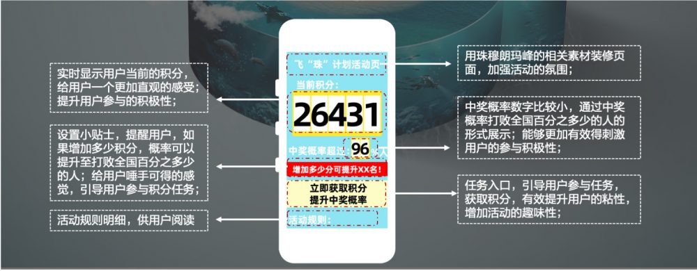 ①设置整点抽奖活动,增加用户的活跃度,营造活动的整体氛围;