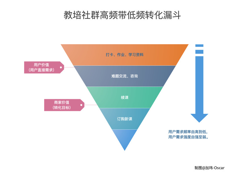 重要的是,私域流量的玩法不仅能够很好地契合学员需求与商家需求,而且是典型的高频打低频的转化方式:无论是作业辅导、学员交流、课外资料都是高频且刚需的场景,结合续课、订购新课的营销非常自然、高效。
