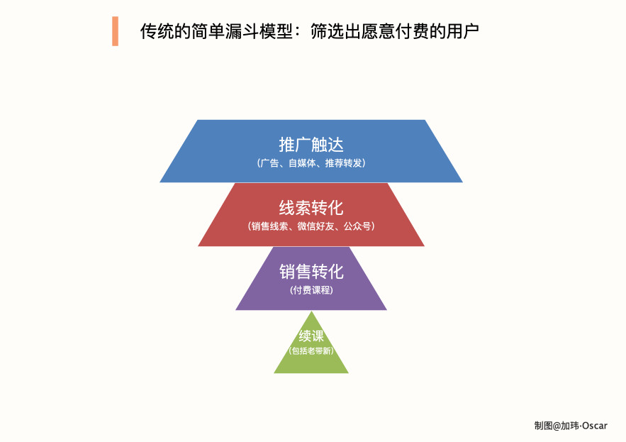 对于学员/潜在学院的变现和转化,其核心的玩法是“梯度转化”。通俗来讲,让愿意付费的用户付费,不愿付费的用户转发,不愿转发的用户关注公众号/进群,不愿意关注号的用户浏览。