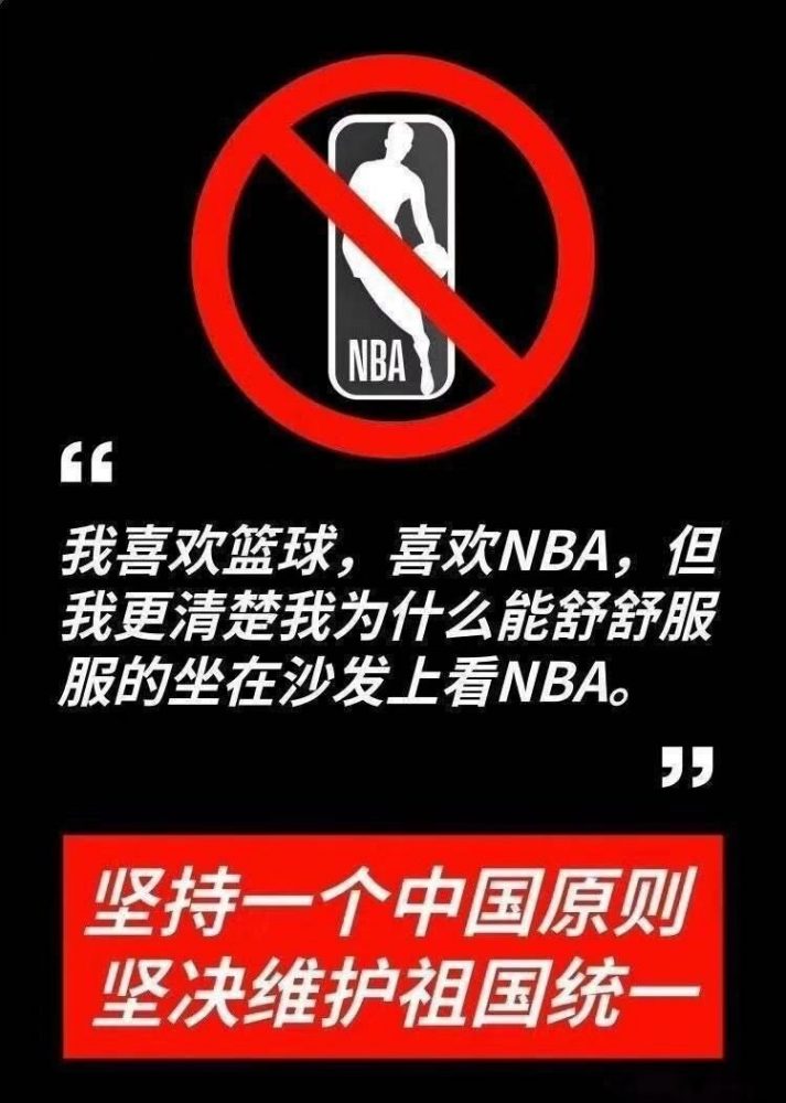 作为NBA十年老球迷,始终支持国家主权和领土完整优先。不看火箭,我们可以看NBA别的球队,不看NBA,我们还可以看欧洲篮球联赛。不看篮球,我们还可以看书、玩英雄联盟、王者荣耀、看足球、看拳击,难道我们的业余生活就无趣了?我宣誓,与祖国始终同在。
