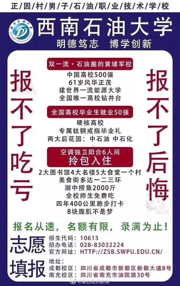 四川众高校今年出了一系列小广告版招生广告,没有什么可赏析的,就是单纯的沙雕,滑动查看: