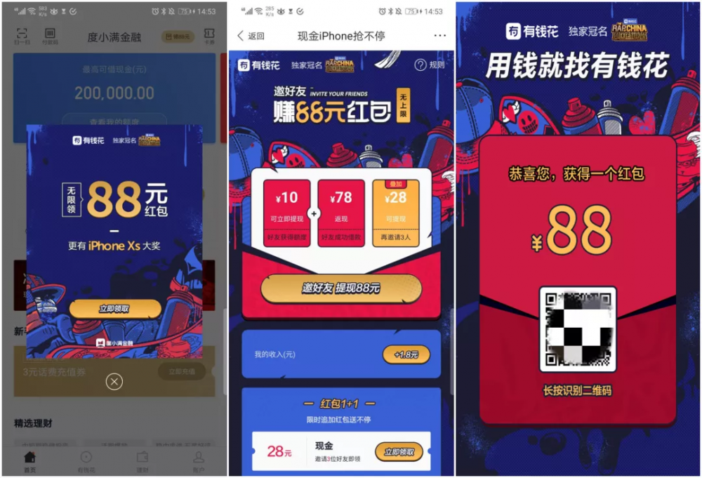 1.活动按钮“登录立得现金1.8元”、“首次分享再得现金2.2元”,“邀请xx位即领多少元”,这些话术给了用户确定性,不少人用百万红包吸引用户进来之后,不会明确告诉用户做什么得多少元,全局充满了不确定性。
