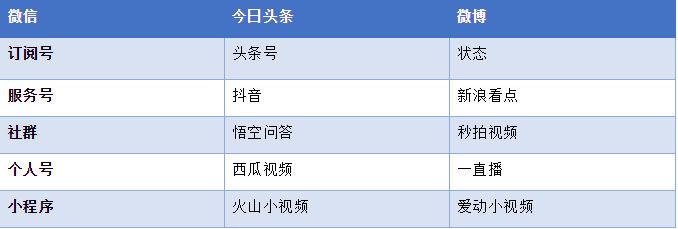 首先,需要了解一些常规的泛内容平台,部分平台例子如图4-3所示。要养成看新闻稿的习惯,这样如果有新兴媒体平台出现,可以第一时间知道。