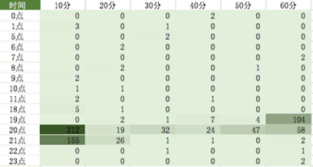 再研究学员的发言时间,可以发现大多数评论集中出现在19:50~20:00、20:00~20:10以及21:00~21:10这三个区间,分别对应了上课前10分钟预热签到、上课10分钟的反馈以及课后的问答反馈。上课期间的评论较少,应该是引导的结果。由此可见,整体时间的把控相对不错,但是最后10分钟的评论量比开课前的要少一些,所以我们总结得出经验,以后可以通过一些埋彩蛋的方式提升完课率。
