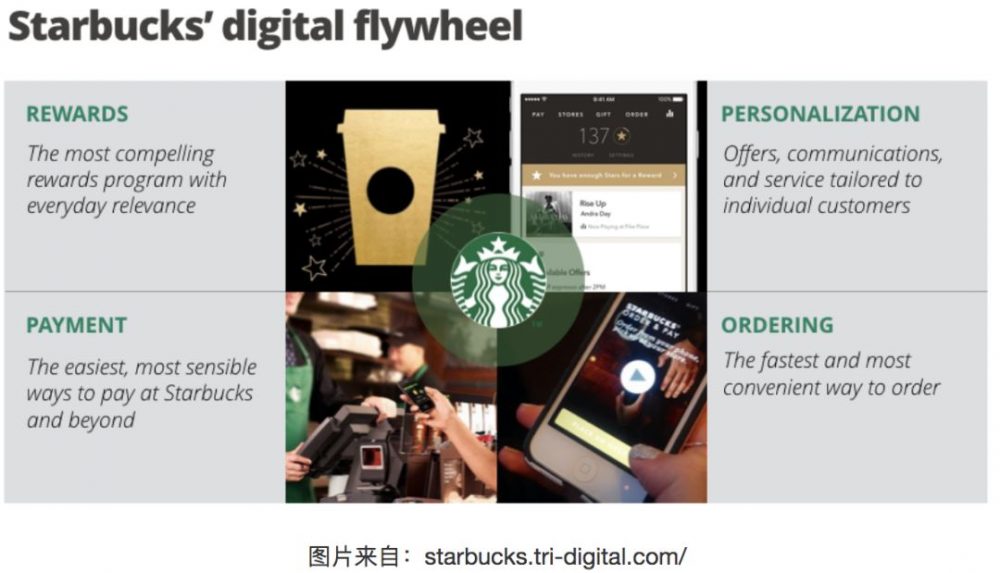 数字化一直是星巴克全球业务增长的重要战略。早在2016年,星巴克就提出“数字飞轮"(digital flywheel) 战略。