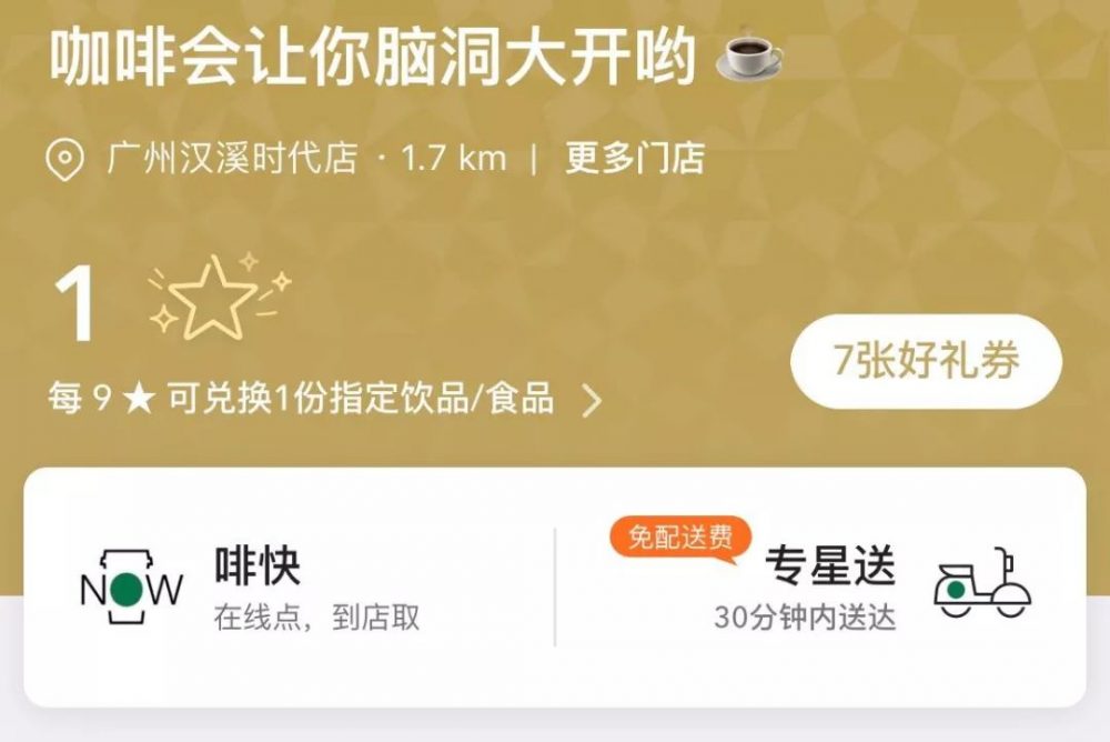 1、星巴克和阿里巴巴达成合作,在 35 个城市提供“专星送”服务,还和饿了么打通了会员体系。用户在饿了么下单同时也能积累星巴克会员积分。