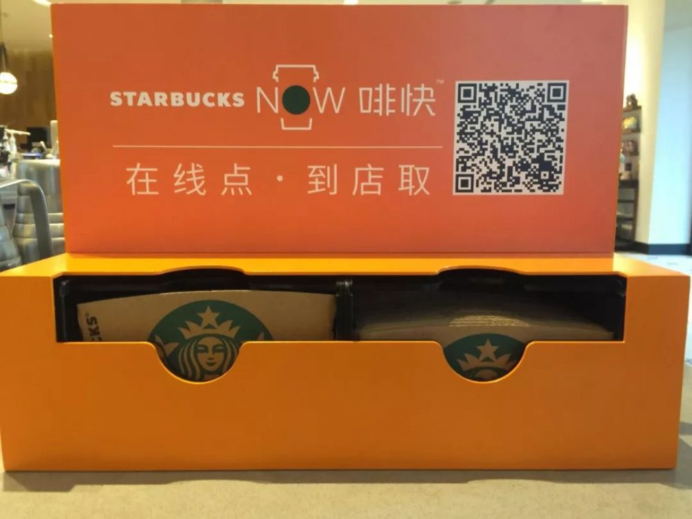 星巴克虽说是传统的零售出身,但在门店陈列和社交传播上的确是高级玩家和不断创新者,客户在取单的时候就可以看到抢眼的橘色“咖快”区域,随机的“暗号”也是极具中国特色又有分享特性。