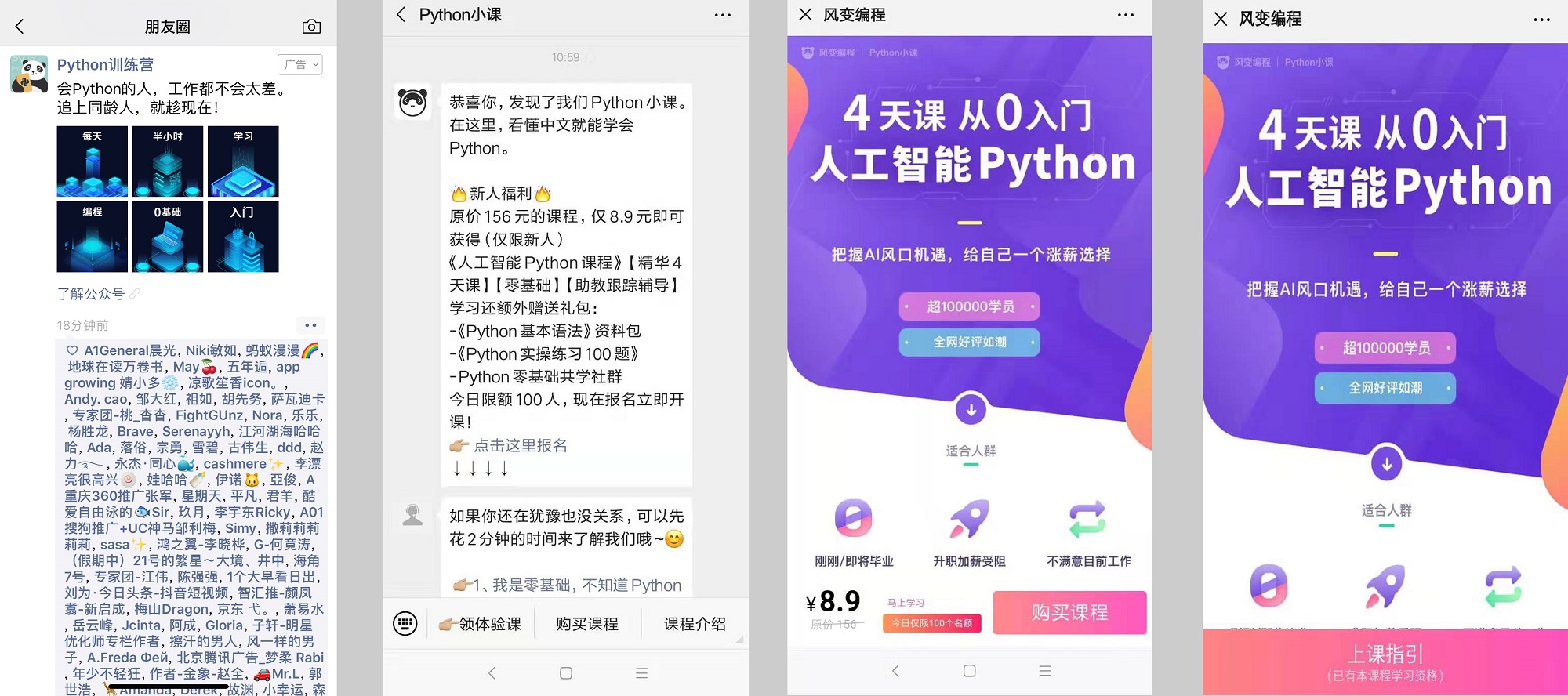 持续投放,必有回响,8月-9月估计大多数人都在朋友圈看到过下面这个Python训练营的广告。