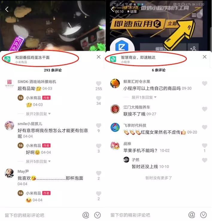 因此,未来运营好评论区这块区域,是很有可能成为抖音小程序商户的“杀手锏”的,简单如借助评论区置顶留言引导用户点击小程序,复杂点的在评论区利用小程序做抽奖活动、话题活动等,这是一块有待发掘的潜力区域。
