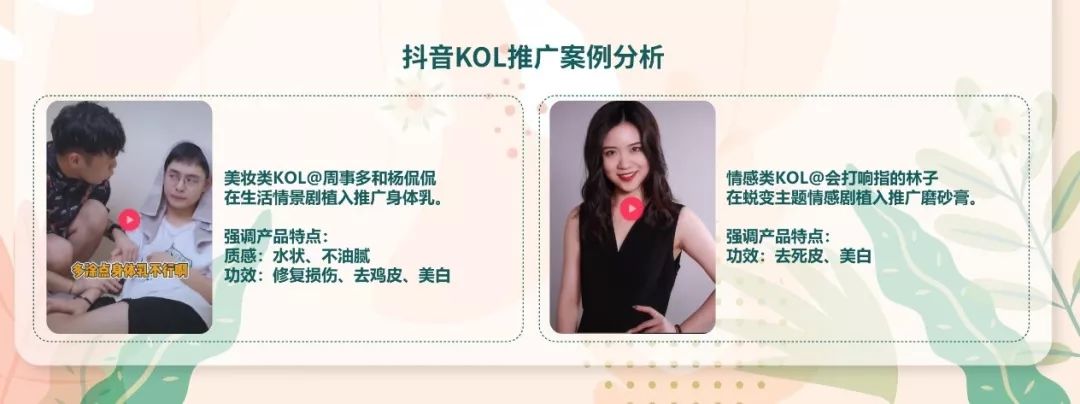 针对强娱乐性、追求刺激的抖音,半亩花田的视频内容前期官方抖音账号通过大量爱情类小剧场获得高互动量并积累粉丝;后期凭借“使用产品后蜕变”爱情类产品安利视频获得用户种草,强故事沉浸感增强了观众对产品的印象。
