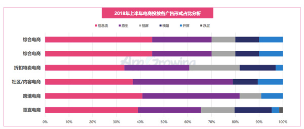 信息流广告是各类型电商App的主要选择。而社区/内容电商和跨境电商则更偏好原生广告。