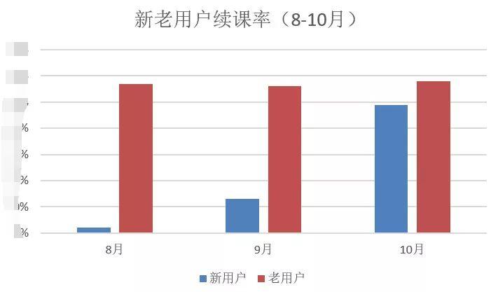 我们拉出不同维度用户数据进行对比,最后发现新用户和老用户的续课率差值竟高达53%。