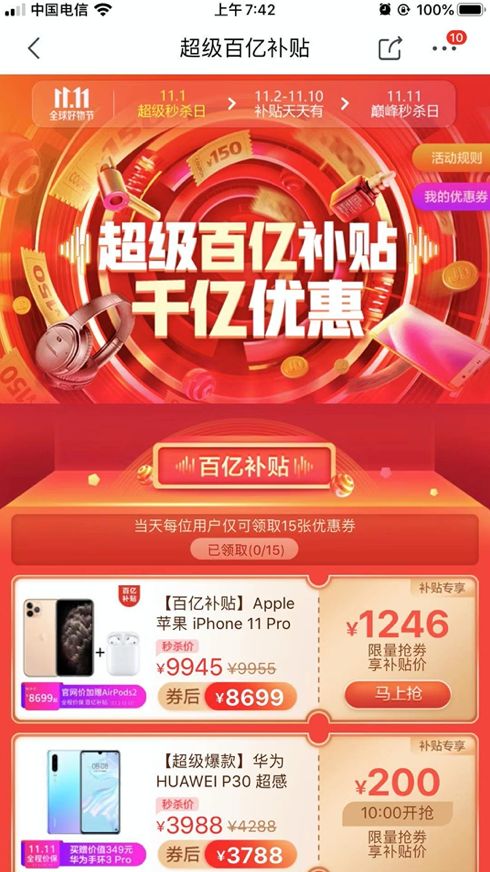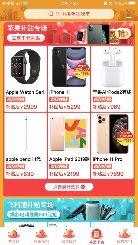 今年双十一是拼多多上市后的第二个双十一,继承了以往的做法:简单粗暴。百亿补贴,非常直接。选中的品类也很有意思:3C产品,特别是苹果系列产品。代表了拼多多人群往上升级的决心,进攻一二线城市。