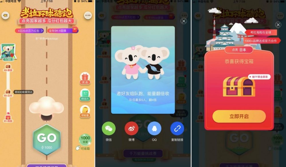 这个双十一是考拉被阿里收购的第一个双十一,我们可以看出玩法的升级。这类游戏玩法继承了天猫游戏的风格,和促销、品牌的深度融合,但是没有看到和阿里系产品的融合,可能明年就能看到协作。