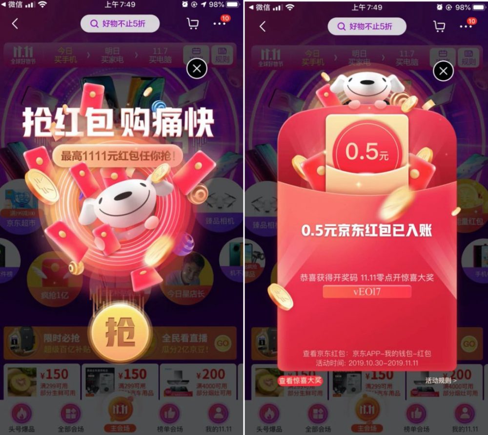 “京享红包,打开可获得一个抽奖码,可开惊喜大奖,可反复进链接抽3次,最高1111元,抽它~