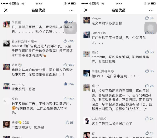 名创优品的原则是,只发三观端正、温暖走心内容,一切与粉丝无关的内容,没有观点的内容,三观不正的内容都不发。