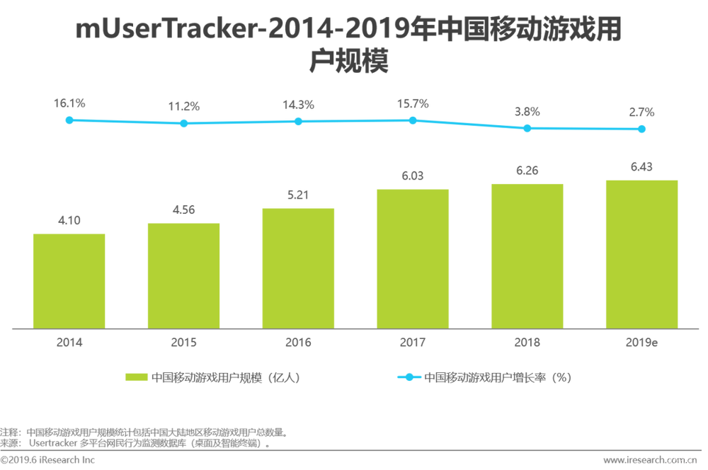 根据艾瑞咨询的数据显示,版号政策使目前的手游市场增速放缓。2018年中国移动游戏用户规模约6.26亿人,同比增长3.8%,去年几款爆款游戏并没有对游戏用户的增长形成有效的支撑,中国移动游戏市场已正式从增量时代转为存量时代。