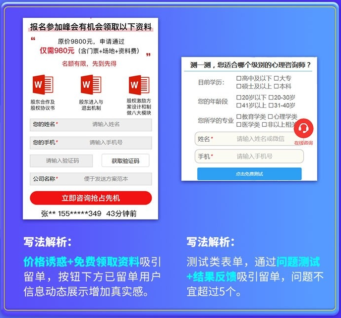 ③测试类表单:多久拿证?结业后月薪多少?测一测定制提升方案