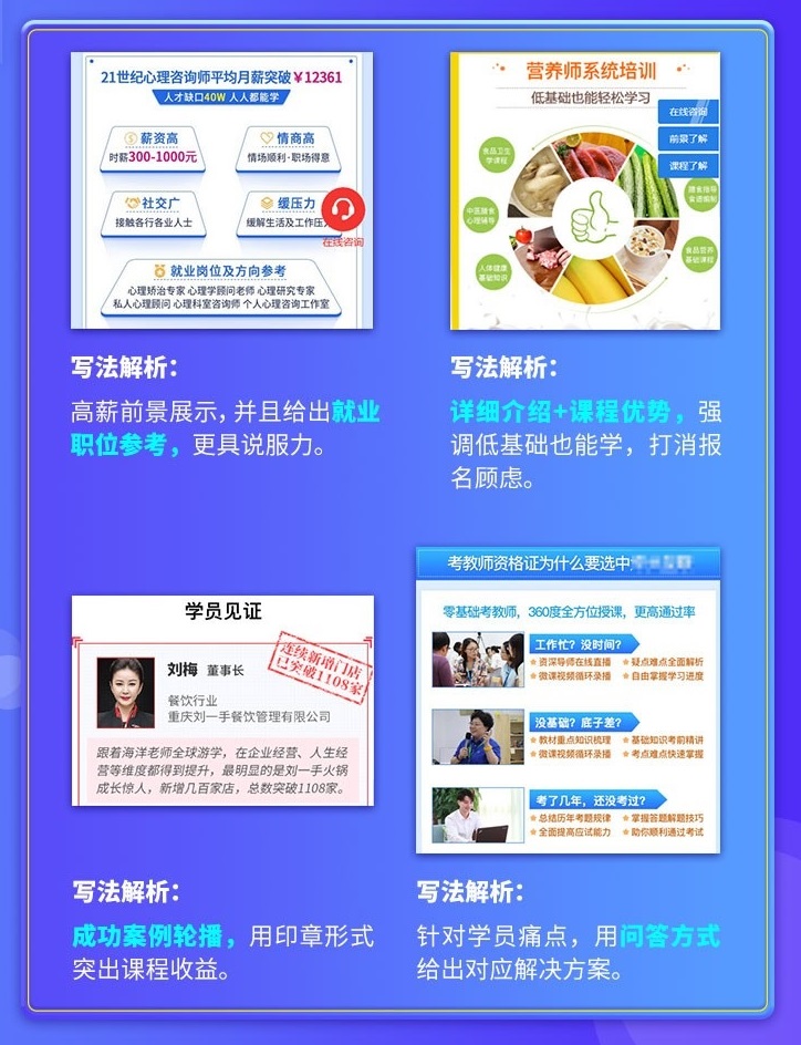 本篇给分享的是教育行业细分职业培训落地页搭建技巧。本期你将看到:职业培训行业主要卖点解析、行业人群基础画像及关注点、落地页搭建通用逻辑&案例、页面设计补充说明。(文末附完整图解内容)