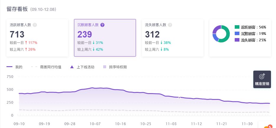 沉默用户是最后一次消费时间在30-60天时间范围内的顾客,这类顾客属于重点挽留顾客,通常需要发放低门槛高面值的优惠券来挽回。