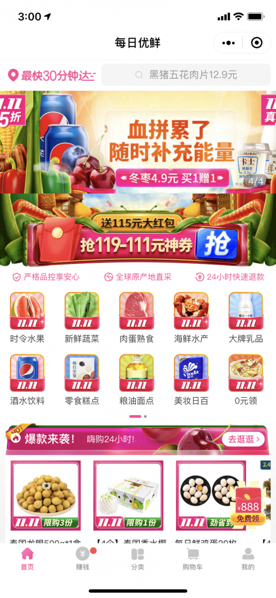 每日优鲜小程序页面