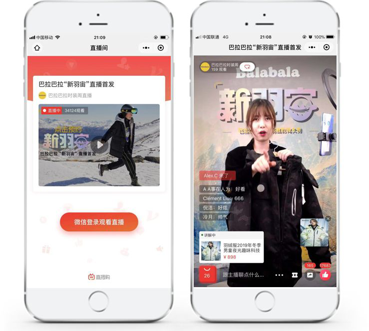为助力冬季新款上线,巴拉巴拉在微盟直播购平台开启新品“新羽宙”直播,20件新品在直播中首发,用户可以在直播过程中边看边买,享受直播优惠,提升转化率。