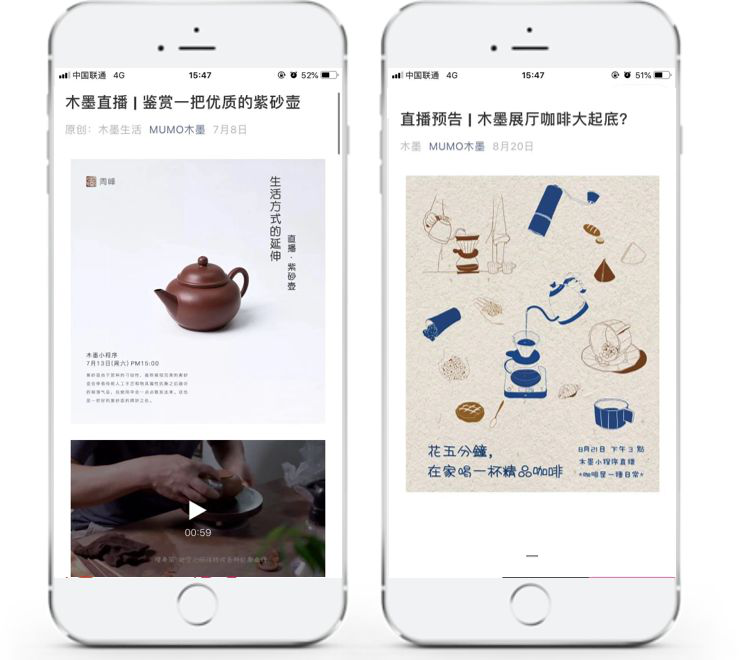 为粉丝创造交流平台,提高粉丝对品牌粘性,原创家居品牌木墨在小程序商城开启直播,邀请手艺人到直播现场,原价680元的手工大红袍紫砂壶,仅在直播过程中限时折扣500元,最终,商品在直播过程中即售罄。