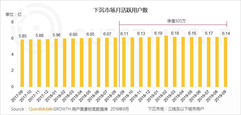 据Quest Mobile发布的2019年Q3中国移动互联网大报告显示,下沉市场用户规模达到6.14亿,这类群体时间较充裕,虽然对价格较为敏感,但平均消费增速远高于一二线城市,是电商企业流量增长的重要来源。