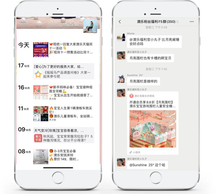 粉丝扫码添加客服个人IP号“澳乐乐姐”后,乐姐通过活跃的文字、图片和专业教程把“育儿顾问”的人设给立了起来,让用户感受到沟通的是一个鲜活的人,乐姐朋友圈还会经常推出限时活动,打造宠粉福利,营造畅销感。