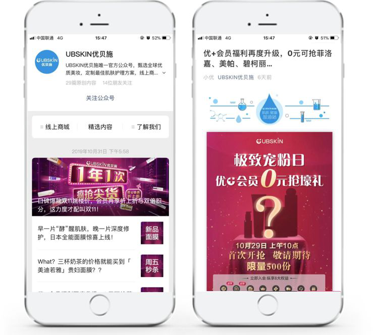 优贝施公众号,为有效促活沉淀在公众号内的用户,优贝施公众号会采取推送干货、福利、新品安利等内容,多次触达用户,增加用户黏性。