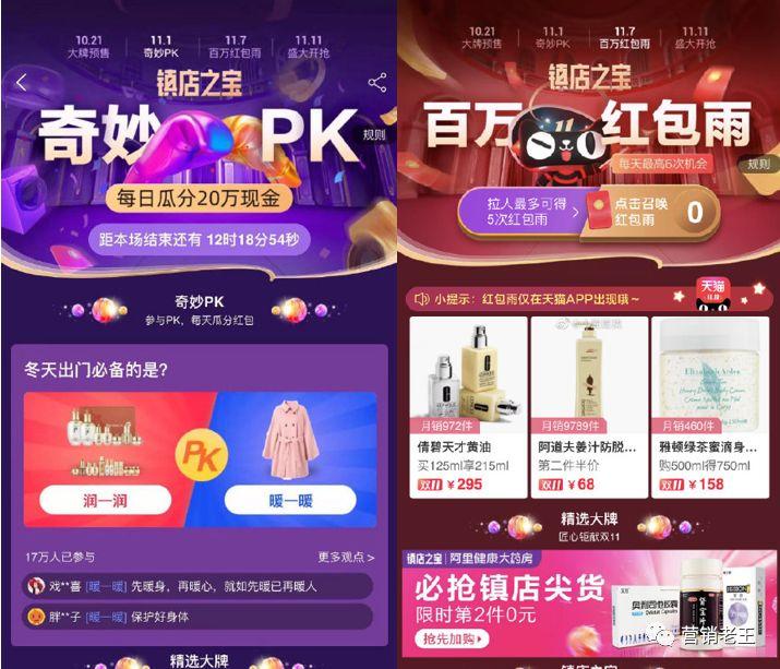 天猫双11持续打造晚会、网综和发布会IP,吸引用户的注意力。其中包括了双11开幕盛典发布会、爆款来了、天猫双11晚会、以及和快手联合主办的老铁晚会。