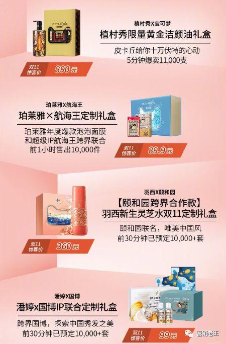 今年双11,天猫联合215个超级大牌(sum37、后、雅诗兰黛、赫莲娜、娇兰、华为等),推出了241款好货进行联合礼盒定制,打响了新品传播。