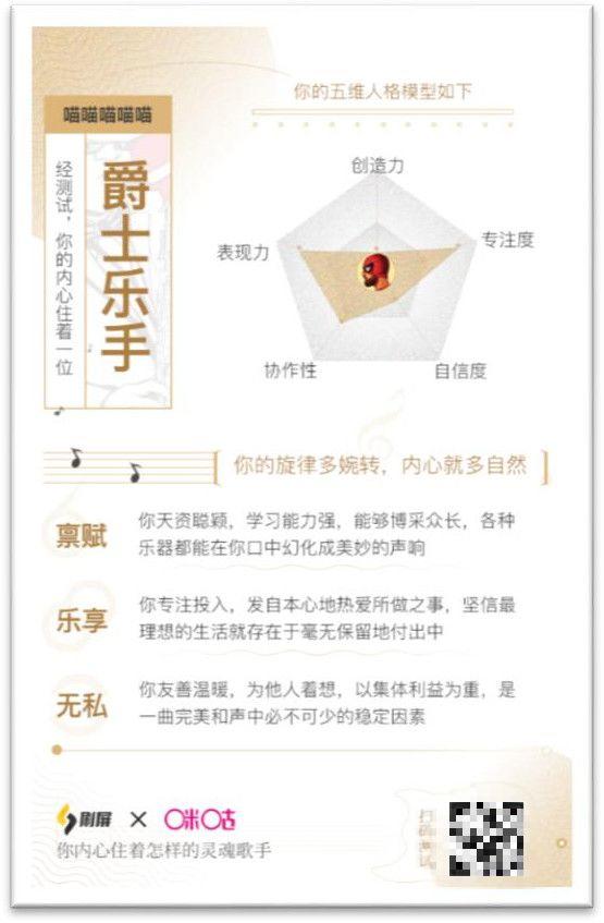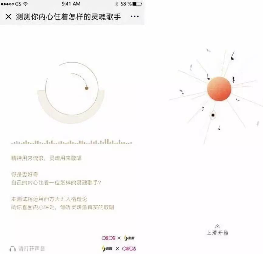 在形式设定之初,我们一早就确定了测试类 H5 的基本形态。而后再把测试、音乐、歌手等元素结合在一起,很容易就会联想到“你是哪一类歌手” “你适合唱哪类歌手的歌曲”“你内心的性格是怎样的歌手类型”等等, 综合考量后,我们锁定了“你内心住着怎样的灵魂歌手”的创意。