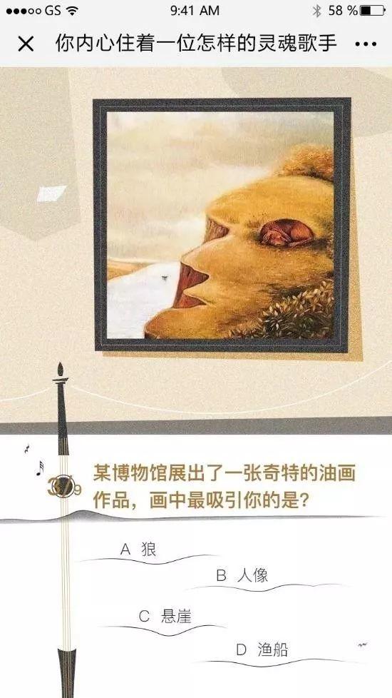 比如,《测测你内心住着怎样的灵魂歌手》中的看图题: