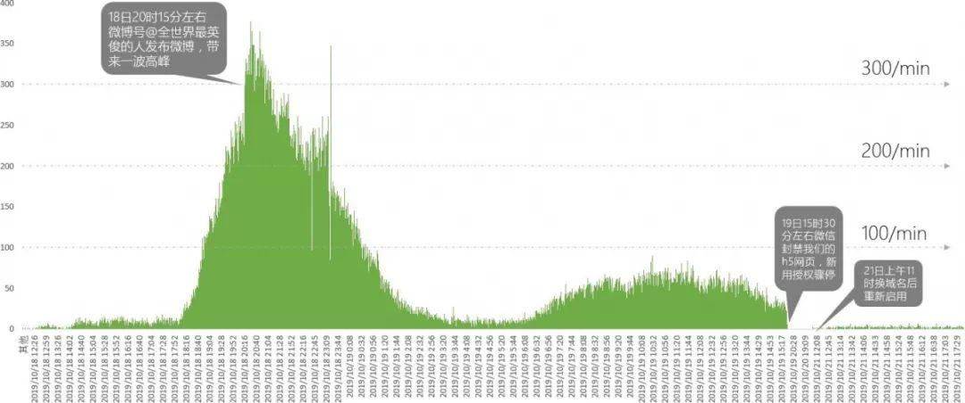 进阶的数据,包括留存时间、跳出率和分钟级监测。前两者可以看出 H5 的质量, 后者则可以看到 H5 的爆发和增长情况。