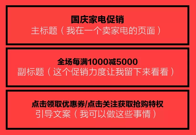 我在哪里(页面主标题) + 我为什么要留下来(页面主要噱头) + 我可以做什么(操作引导)。